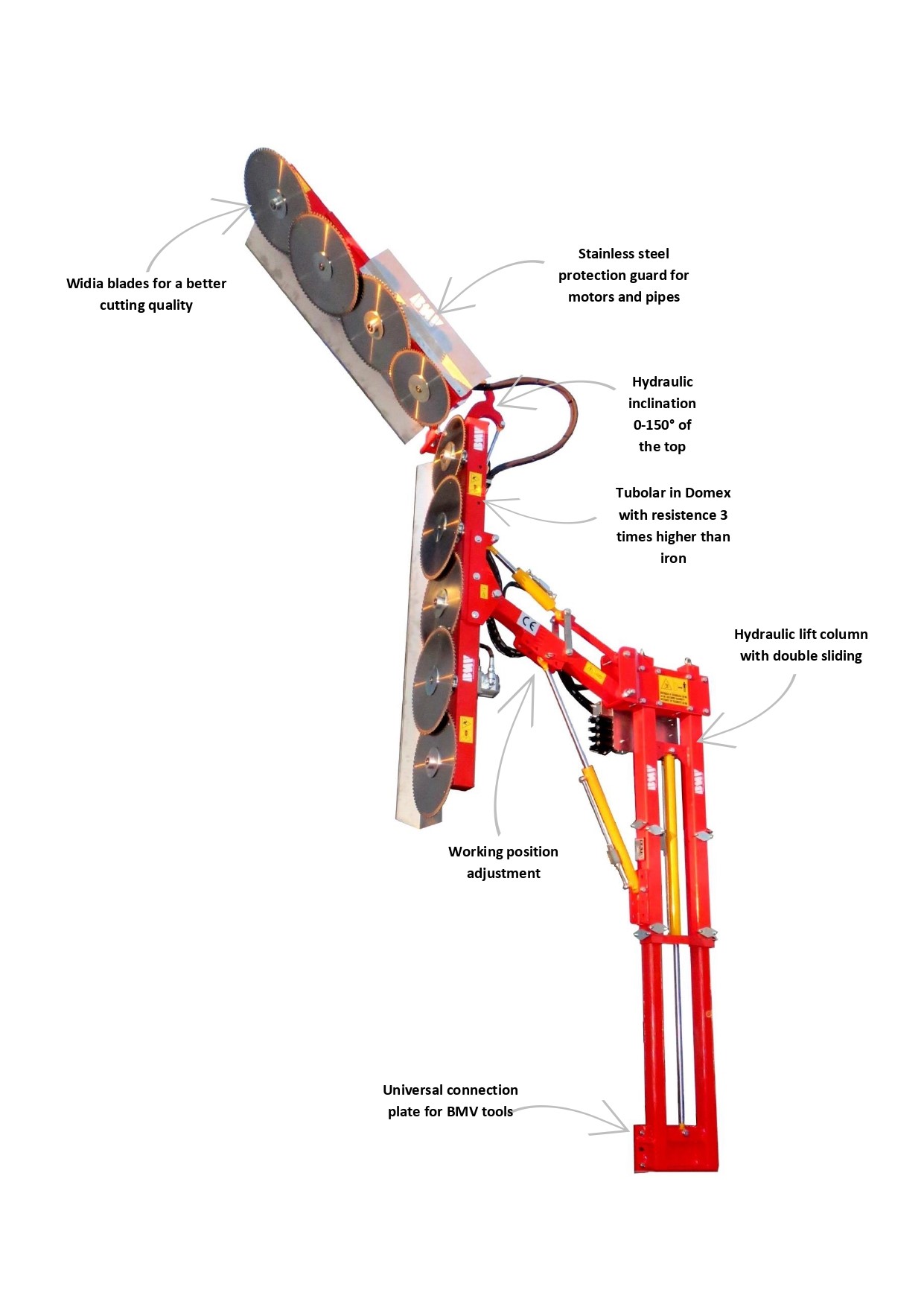 The new B.M.V. "FL600P" trimming machine has been studied both for trees still green and for the dry lopping of citrus, olive groves and orchards. To trim dry trees, there are some turning discs AE 400 and AE 500 for orchards branches until 6cm. of diameter.